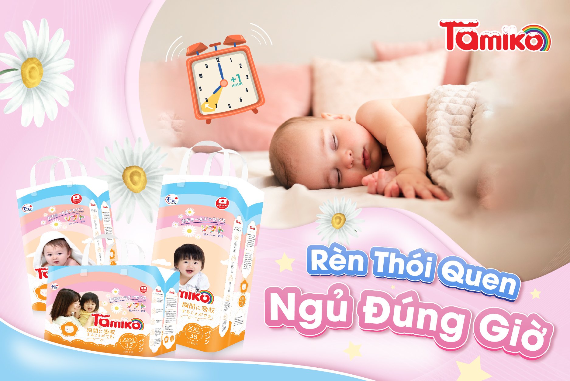 Mẹ có biết, giấc ngủ đóng vai trò rất quan trọng cho sự phát triển của bé. Thấu hiểu lòng mẹ, Tamiko đem đến cho con dòng bỉm với sứ mệnh mang đến hàng vạn giấc mơ cầu vồng, xây dựng những ước mơ xinh đẹp cho bé.