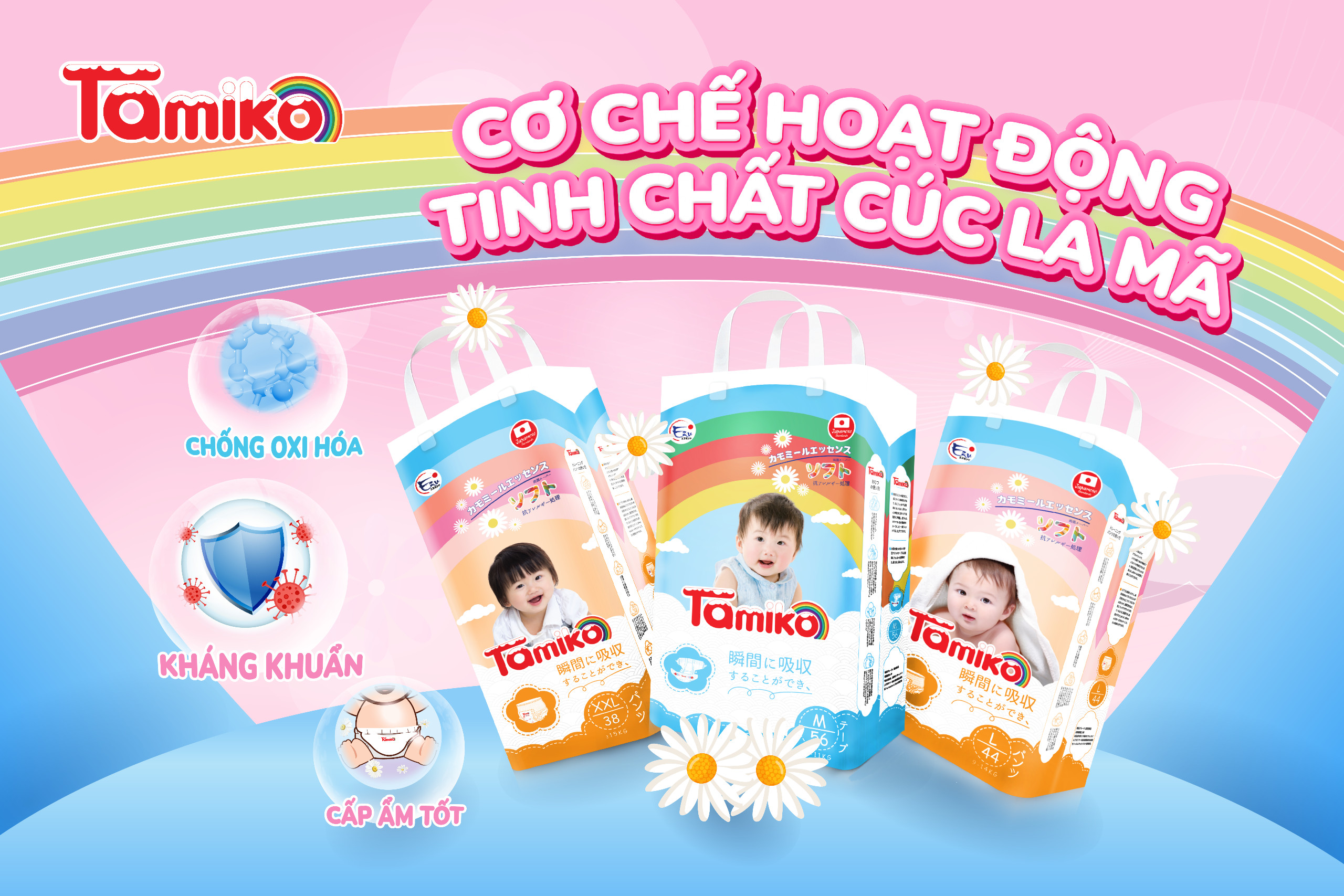Bật mí cho mẹ bỉm Nhật Tamiko chính là chìa khóa xua tan nỗi lo hăm tã của mẹ. Để bảo vệ mông xinh khỏi những vi khuẩn gây mẩn ngứa, hăm tã, mẹ tham khảo ngay tinh chất cúc lã mã độc nhất chỉ có trong bỉm Nhật Tamiko. Với khả năng kháng khuẩn, chống viêm, chống nấm hiệu quả mà không gây kích ứng, bỉm Nhật Tamiko giúp con xóa tan nỗi lo đóng bỉm khó chịu “ăn không ngon, ngủ không yên”. Không những thế, nhờ có tinh chất cúc la mã giàu vitamin B, dòng bỉm cao cấp từ xứ sở hoa Anh Đào còn có khả năng cấp ẩm, làm dịu da, đem lại cảm giác dễ chịu cho con suốt ngày dài. Với tinh chất cúc la mã siêu lành tính, an toàn tuyệt đối với mọi làn da nhạy cảm, mẹ hãy sẵn sàng để thử cho con yêu nhà mình nhé!